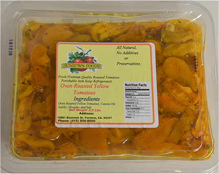 Oven Roasted TomatoesOur Oven-Roasted Tomatoes get their unique flavor and texture from our slow-roasting process. Our specially made walk-in ovens help to bring out the sweetness of the tomato while creating a wonderful texture that is unlike any other! We start with fresh tomatoes that we hand sort for quality. The tomatoes are then cut and placed into our ovens to roast. We never use sulfites or preservatives to ensure our customers get the natural flavors of our product! We offer our tomatoes in a variety of pack sizes and also give our customers the ability to customize the packaging to best suite their needs!