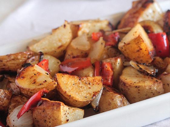 Roast a mixture of cubed potatoes, Sundown Oven Roasted Bell Peppers and onions for a side dish that goes great with roasted meats.