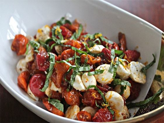Spread the goat cheese evenly over the inside of the warmed baguettes. Evenly distribute the roasted tomatoes on top of the goat cheese.